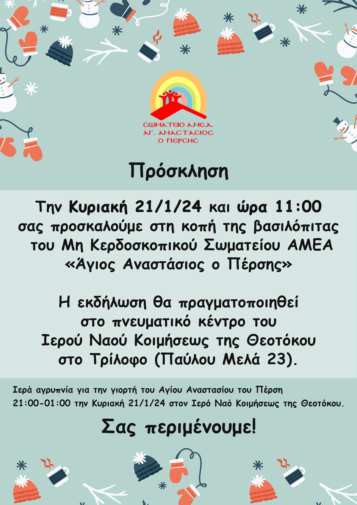 Μείνετε ενημερωμένοι για όλα τα τελευταία νέα και τις εκδηλώσεις του Σωματείου μας. Ανακαλύψτε τις δράσεις, τις πρωτοβουλίες και τις ευκαιρίες συμμετοχής που δημιουργούμε για τα Α.ΜΕ.Α και την κοινότητά μας!